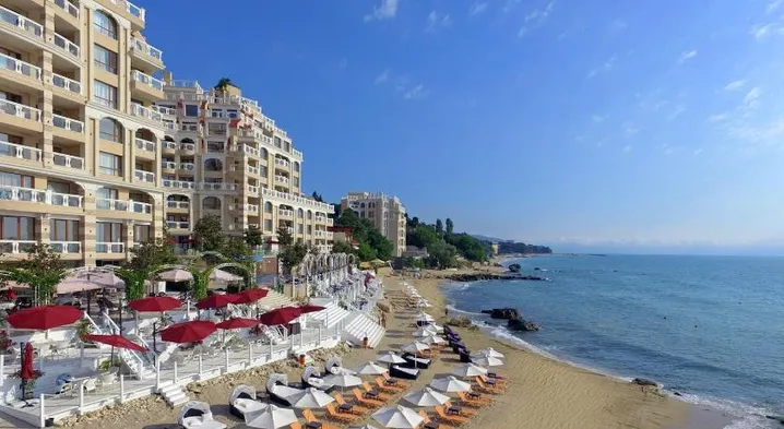 Hotels with a private beach in Golden Sands typically offer a variety of amenities designed to enhance your beach experience. Guests can expect sun loungers and umbrellas set up for their use, allowing for comfortable relaxation by the water. Many hotels also provide beachside service, where you can order food and drinks directly to your spot on the beach. Additionally, some resorts may include water sports activities, such as snorkeling, kayaking, or paddleboarding, giving guests the chance to explore the beautiful coastline. On-site dining options with scenic views are common, offering fresh seafood and local cuisine. Furthermore, you can often find beach bars that serve refreshments and cocktails throughout the day.