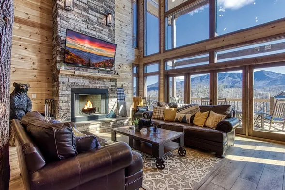 Smoky Heights Overlook, Luxury Log Cabin, Mountain & City Views