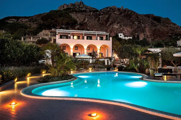 Relax in a luxurious spa hotel with indoor and outdoor pools, located near the Royal Palace of Ischia.
