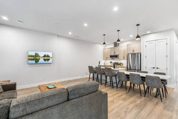 Cozy apartment with private entrance, shared hot tub, and access to outdoor activities like hiking and kayaking.