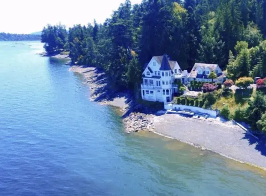Waterfront Castle on the beach with hot tub on 1.58 Acres at downtown Chemainus