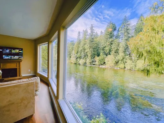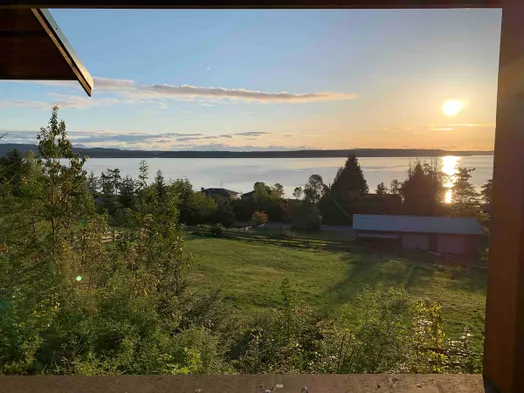 Luxury vacation home with ocean views, a huge balcony, and a gas fireplace in Port Renfrew.