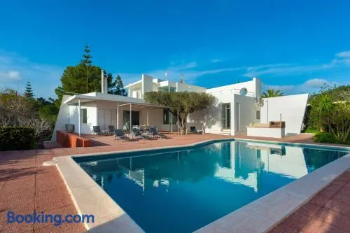 Luxurious hotel with 2 outdoor swimming pools, a sauna, and a restaurant in Ibiza Town.