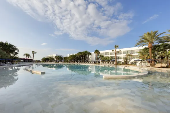 Luxury hotel with 3 outdoor swimming pools and Mediterranean dining in Sant Antoni de Portmany.