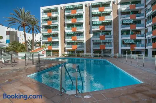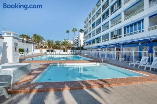 Enjoy a stay in this aparthotel with an outdoor pool, kitchen facilities, and stunning beach views in Maspalomas.