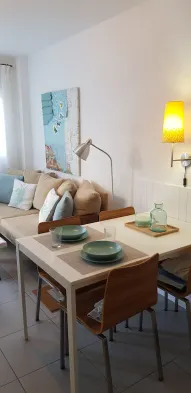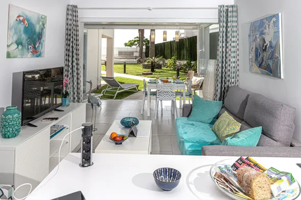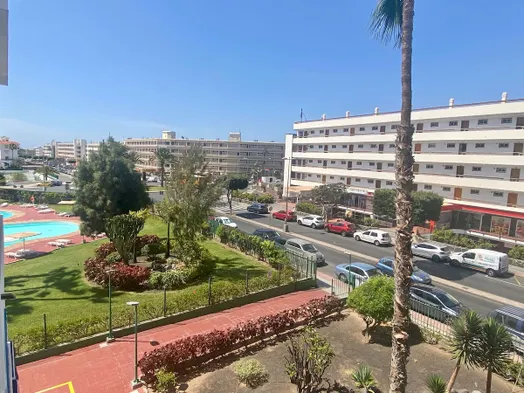 Holiday apartment with private outdoor area, shared swimming pool, and free Wi-Fi near the beach in Playa del Ingles.