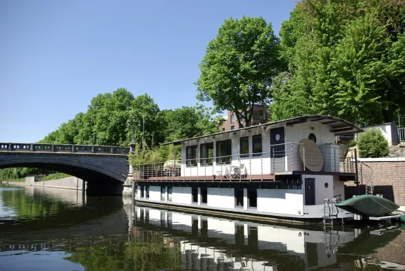 Luxury houseboat centrally in Hamburg with a clear view