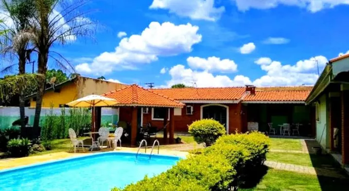 Family-friendly inn with outdoor and indoor pools, sauna, and arcade game room in Atibaia.