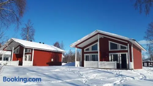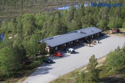 Experience comfort at this lodge with a private beach, sauna, hot tub, and cozy fireplace for a memorable stay in Inari.