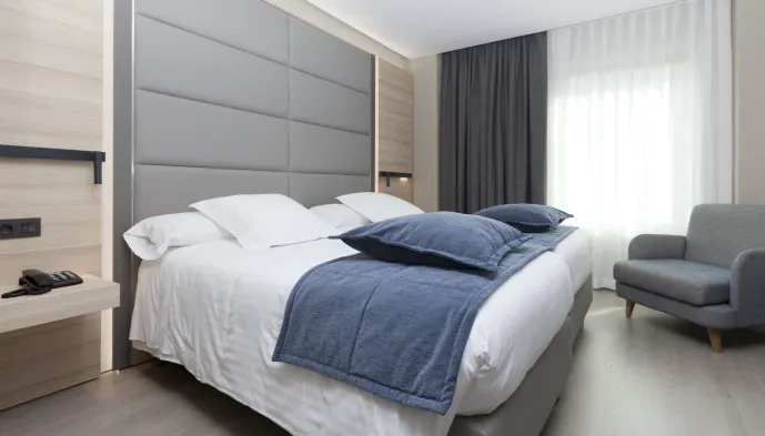 Centrally located hotel in Madrid with air-conditioned rooms, concierge services, and a bar/lounge for a relaxing stay.