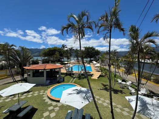 Beachfront hotel with outdoor pool, sauna, and fitness center, steps from Maresias Beach and Serra do Mar State Park.