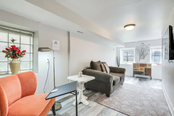 Cozy guest house in Chicago with jetted bathtubs, full kitchens, and a garden for relaxation.