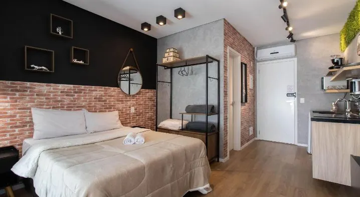 Studio apartment with outdoor swimming pool, sauna, and free parking in Guarulhos, close to Guarulhos International Airport.