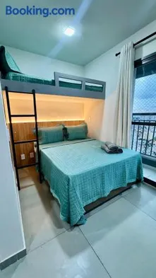 Aparthotel with swimming pool, rooftop pool, sauna, and family room in Guarulhos, State of Sao Paulo.