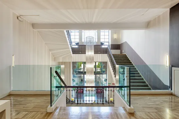 Modern hotel in Milan with fitness center, spa, and excellent in-house restaurant.