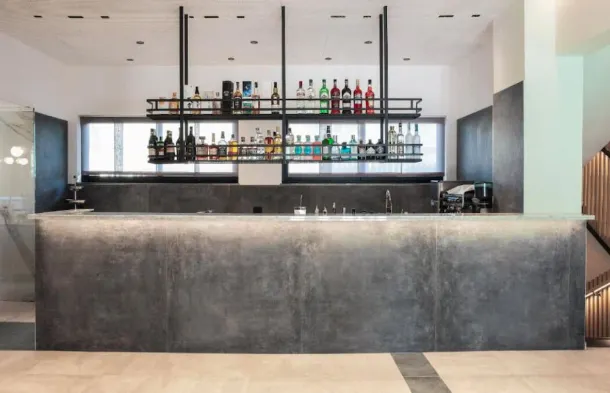 Modern aparthotel with fitness center, restaurant, and spacious rooms featuring private balconies in Pero, Italy.