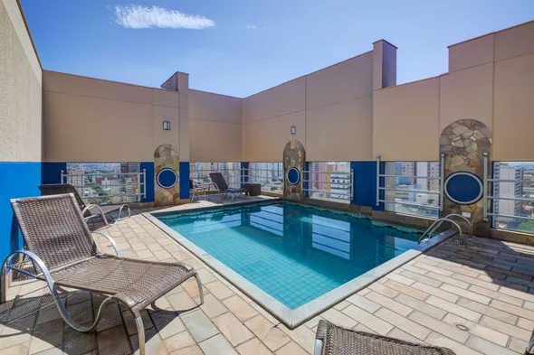 Centrally located aparthotel with outdoor pool, sauna, fitness center, and complimentary breakfast in Londrina.