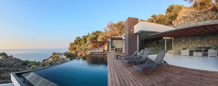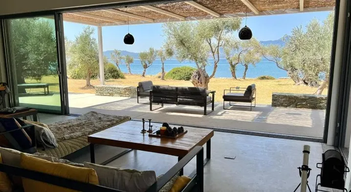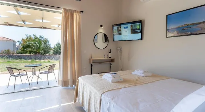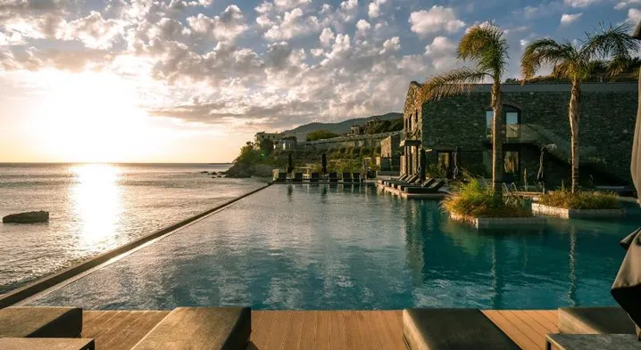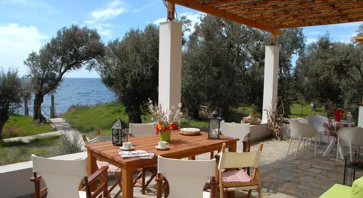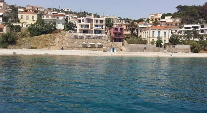 Luxury beach hotel with outdoor pool, tennis courts, and two restaurants in Neapoli, Lesvos.