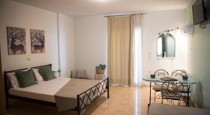 Spa hotel near Evdilos Beach with outdoor pool, sauna, and bicycle rentals for a relaxing getaway.