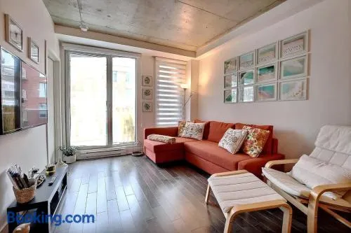 Luxurious aparthotel in downtown Montreal with indoor pool, full-service spa, and Thai restaurant just steps from Bell Centre.