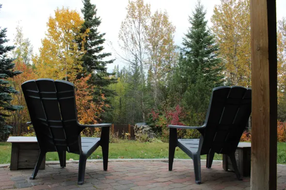 Kitchenette Suite with King & Queen beds, Quiet Forest views from patio with BBQ