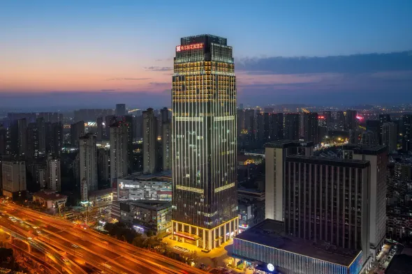 Luxury hotel with 3 indoor swimming pools, spa services, and multiple dining options in the heart of Hefei.