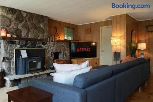 Holiday home with hot tub, outdoor fireplace, and free parking in Huntsville, Canada.