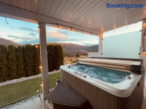 Experience luxury with a seasonal outdoor pool, hot tub, and stunning views in Vernon, British Columbia.