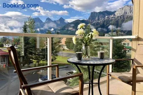 Canmore Mountain Resort with underground parking, pool and hot tub