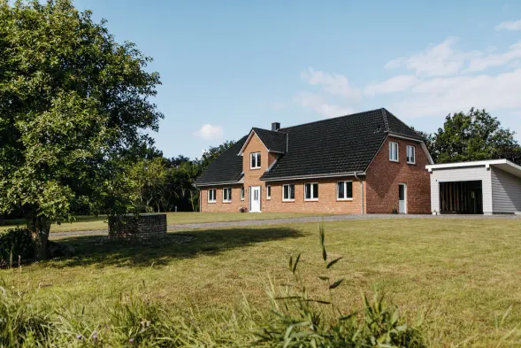 Modern wooden house with large garden and terrace near the beach (child-friendly)