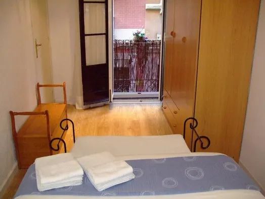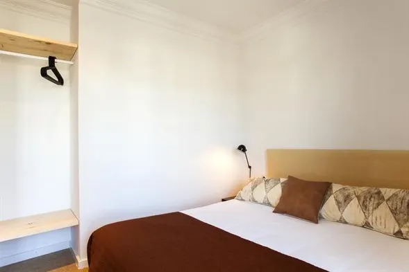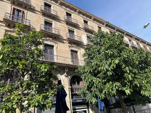 Centrally located hostel in Barcelona with a rooftop terrace and private furnished patios in guest rooms.