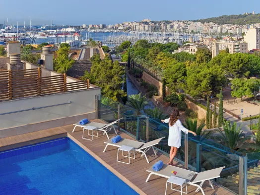 Luxury spa hotel with indoor and outdoor pools, located in the heart of Palma de Mallorca, near major attractions.