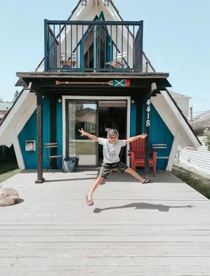Cozy A-frame cabin 1/2 block from the gorgeous Sylvan Lake beach, parks & pubs