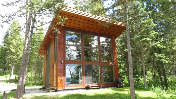 Custom built waterfront property with modern-rustic design, sauna, and kayaks for outdoor adventures.