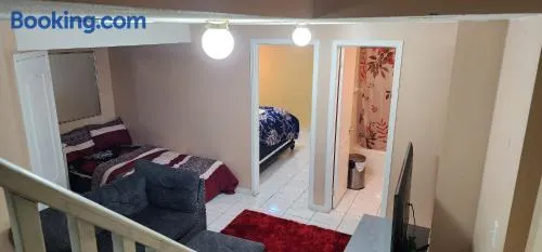 Cozy guest house in Brampton with a king-size bed, garden, and express check-in/check-out.