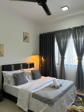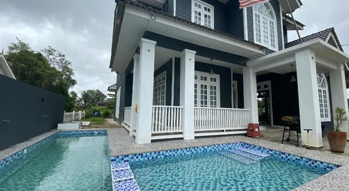 Relax by the outdoor swimming pool at this homestay in Kuala Terengganu, just minutes from the Floating Mosque.