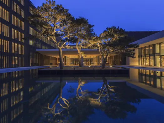 Luxury hotel with indoor and outdoor heated pools, 7 restaurants, and a full-service spa in the heart of Qingdao.