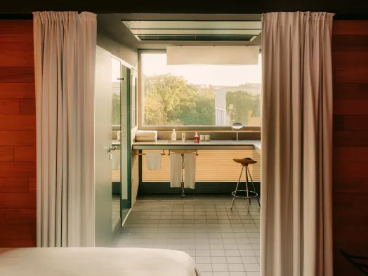 Luxury hotel with spa, sauna, and stunning city views, centrally located in Berlin near Velodrom.