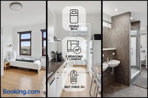 Apartment für 13 Gäste, 5 Schlafzimmer, 2 Bäder, 2 Loggia's, Leipzig Zentrum Ost