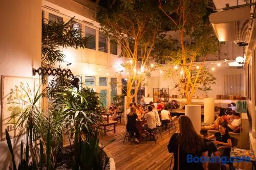 Adults-only hostel with unique design elements, 24/7 front desk, and evening entertainment near Oktoberfest and Munich's old town.