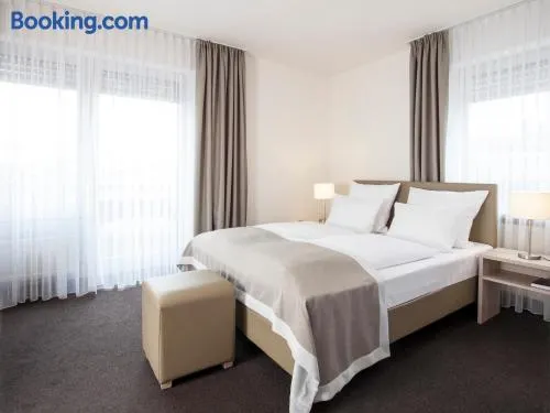 Comfortable hotel in Munich with express check-in, a garden, and air-conditioned rooms featuring flat-screen TVs.