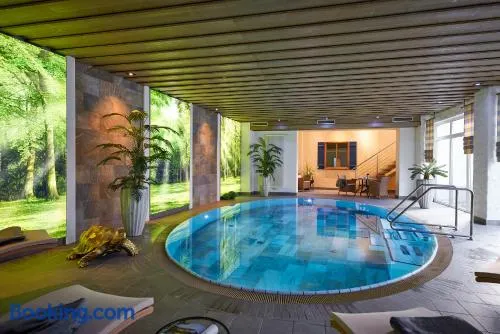 Relax in spacious rooms with a large spa featuring 2 pools, located beside the Kurpark spa gardens in Willingen.