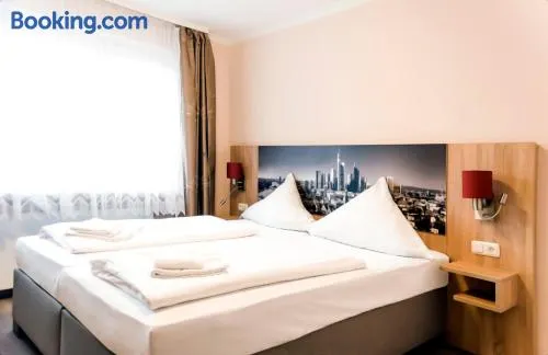 Comfortable hotel with air-conditioned rooms, express check-in/out, and convenient access to Frankfurt Trade Fair.