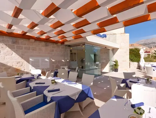 Relax by the outdoor pool at this hotel near Banje Beach, featuring a restaurant and tennis courts for active guests.