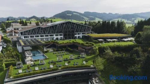 Luxury hotel with full-service spa, two indoor swimming pools, and a golf course nearby in Oberstaufen.