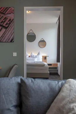 Modern apartment with kitchens, private balconies, and bicycle rentals in the heart of Böblingen, near Motorworld Stuttgart.