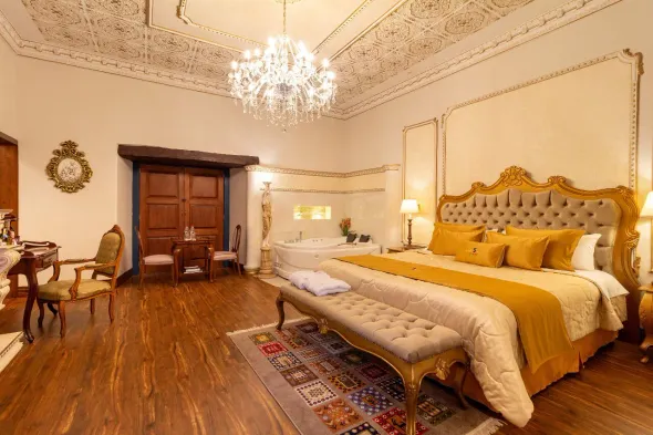 Luxury hotel in Cuenca with outdoor pool, sauna, fitness center, and gourmet dining options.