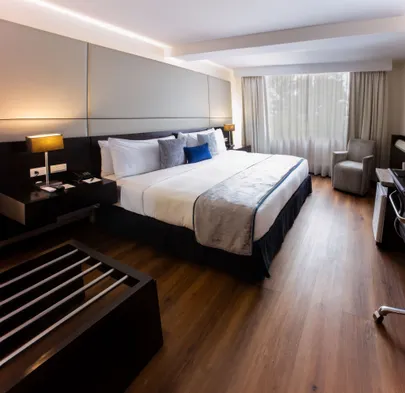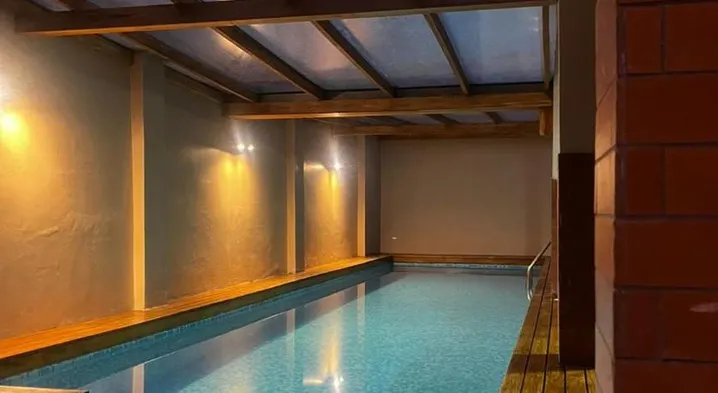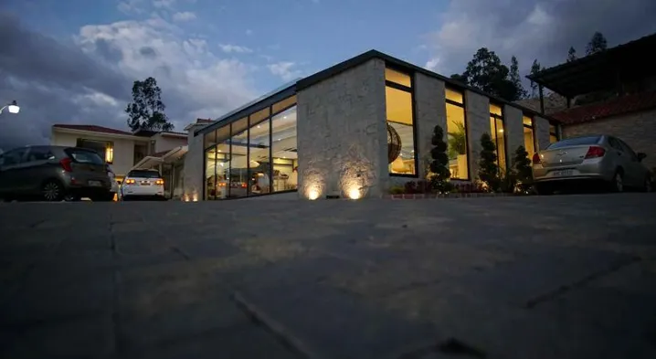 Luxury hotel in Cuenca with outdoor pool, sauna, fitness center, and gourmet dining options.