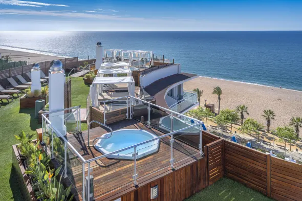 Luxury hotel with two outdoor swimming pools, sauna, and a restaurant, just a short walk from Calella Beach.