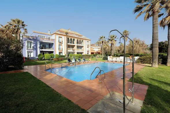 Spacious apartment with private garden, outdoor terrace, and shared pool, just 250m from the beach in Casares.